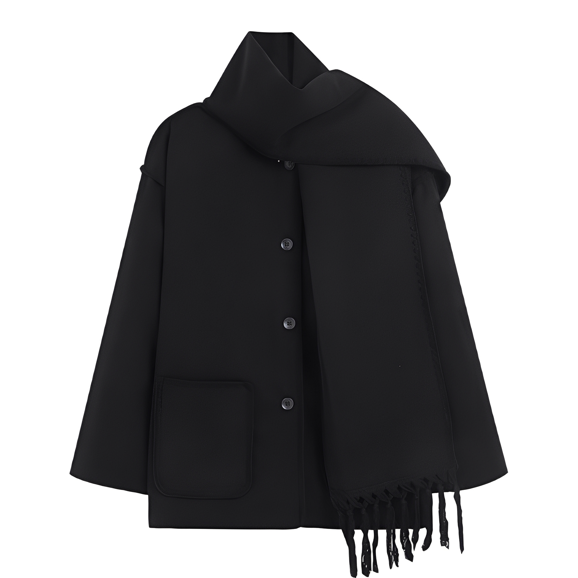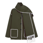 Diese Amilia bringt stilvollen Charme mit hohem Komfort zusammen. Aus weichem Wollstoff gefertigt, bietet sie angenehme Wärme bei niedrigen Temperaturen. Der lockere Schnitt sorgt für eine schmeichelhafte Passform und der dazugehörige Schal setzt einen modischen Akzent. Die Amilia ist perfekt für den Alltag, entspannte Momente oder elegante Gelegenheiten – ein Muss für modebewusste Frauen.