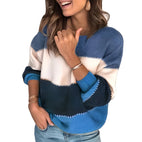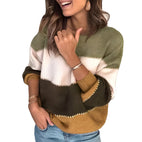 Der 'Aubrie'-Pullover mit trendigem Color-Block-Design bietet maximalen Komfort. Er besteht aus einem weichen, warmen Stoff, der bei niedrigen Temperaturen angenehm ist. Der lose Schnitt bietet Bewegungsfreiheit und einen entspannten Look, der sich gut mit Jeans, Röcken oder Leggings kombinieren lässt. Perfekt für Spaziergänge, Freizeitaktivitäten oder lässige Alltagsoutfits.