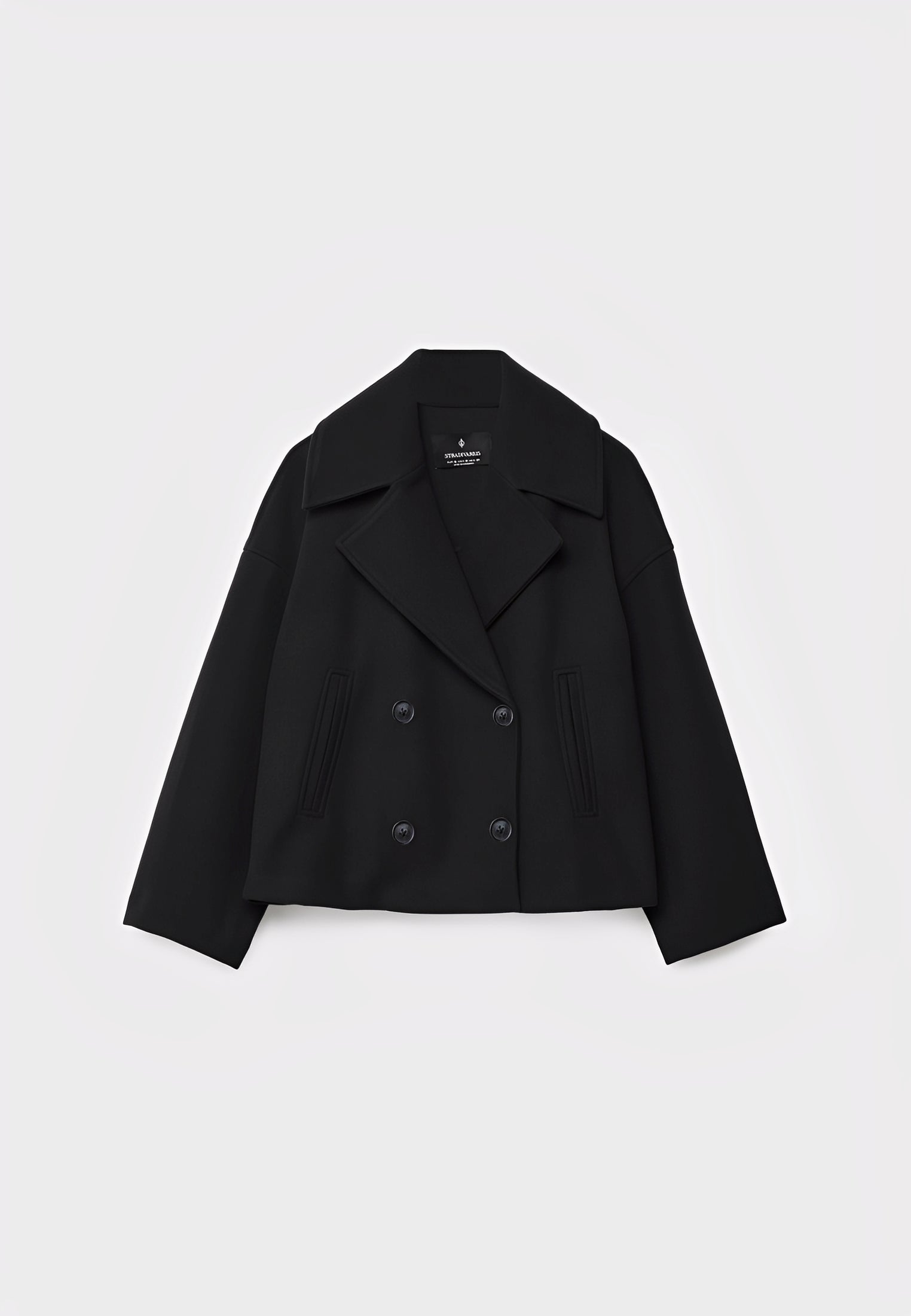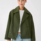 Die Kurze Doppelreihige Jacke kombiniert zeitlose Eleganz mit moderner Funktionalität. Ihr doppelreihiges Design und ihre kompakten Proportionen machen sie zu einem schicken und vielseitigen Stück, ideal sowohl fürs Büro als auch für Ausflüge. Hergestellt aus hochwertigen Materialien, bietet sie angenehme Wärme und eine vorteilhafte Silhouette. Diese Jacke vereint Komfort, Praktikabilität und Stil für einen selbstbewussten Look in jeder Situation.