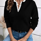 Der „Corrina“-Pullover vereint ein feines Strickmuster mit einem edlen Detail. Der weiche Stoff sorgt für hohen Komfort, und die filigranen Spitzenakzente geben einen weiblichen Touch. Perfekt für den Alltag, das Büro oder entspannte Stunden – ein stilvoller Begleiter das ganze Jahr.