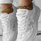 Die Elisabeth Sneakers vereinen stilvolles Design mit guter Belüftung. Das leichte Obermaterial hält die Füße kühl und die weiche, ergonomische Einlegesohle bietet den ganzen Tag über Komfort. Das dezente Blumenmuster verleiht den Schuhen einen femininen Akzent und macht sie ideal für Freizeitaktivitäten, Spaziergänge oder alltägliche Wege. Das praktische Slip-On-Design sorgt für einfaches An- und Ausziehen und erhöht den Tragekomfort.