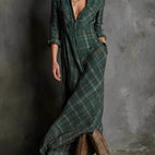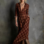 Wählen Sie natürliche Eleganz mit dem langen Karokleid Émilien, Ihrem unverzichtbaren Stück für Stil und Komfort.