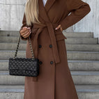 Dieser Zweireihermantel kombiniert eine feminine Form mit einem klassischen langen Revers für einen sehr eleganten Look. Der weich fließende Stoff sorgt für ein angenehmes Tragegefühl, während das strukturierte Design Ihrem Outfit einen Hauch von Eleganz verleiht. Perfekt für den Alltag, das Büro oder besondere Anlässe, ist der Mantel vielseitig zu tragen und bleibt stets modisch.