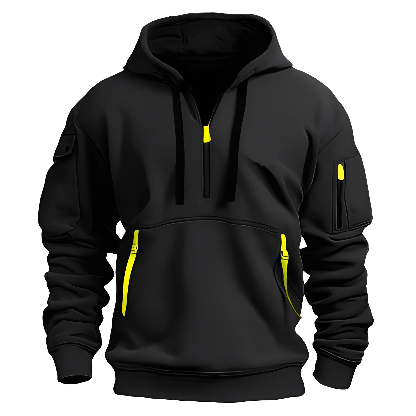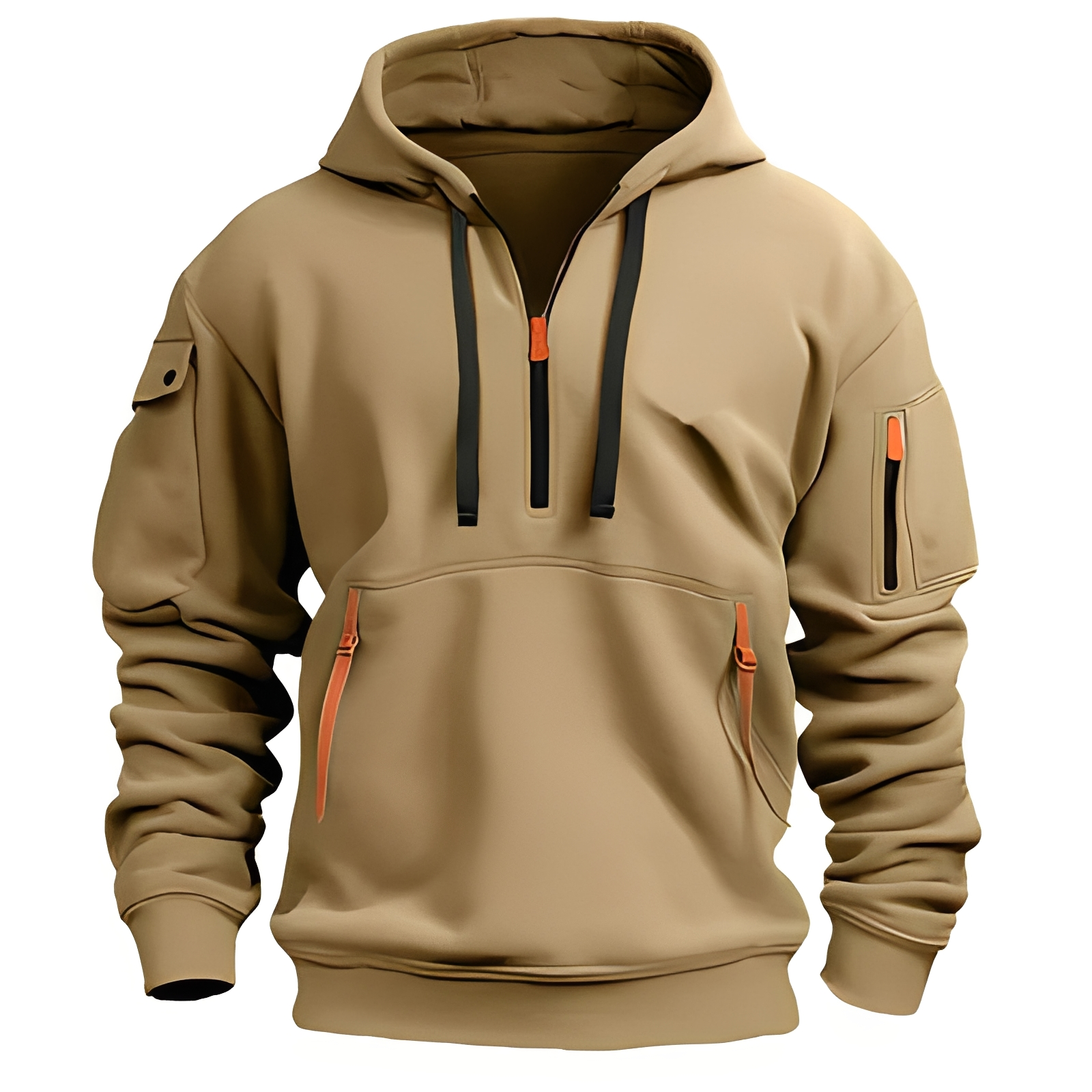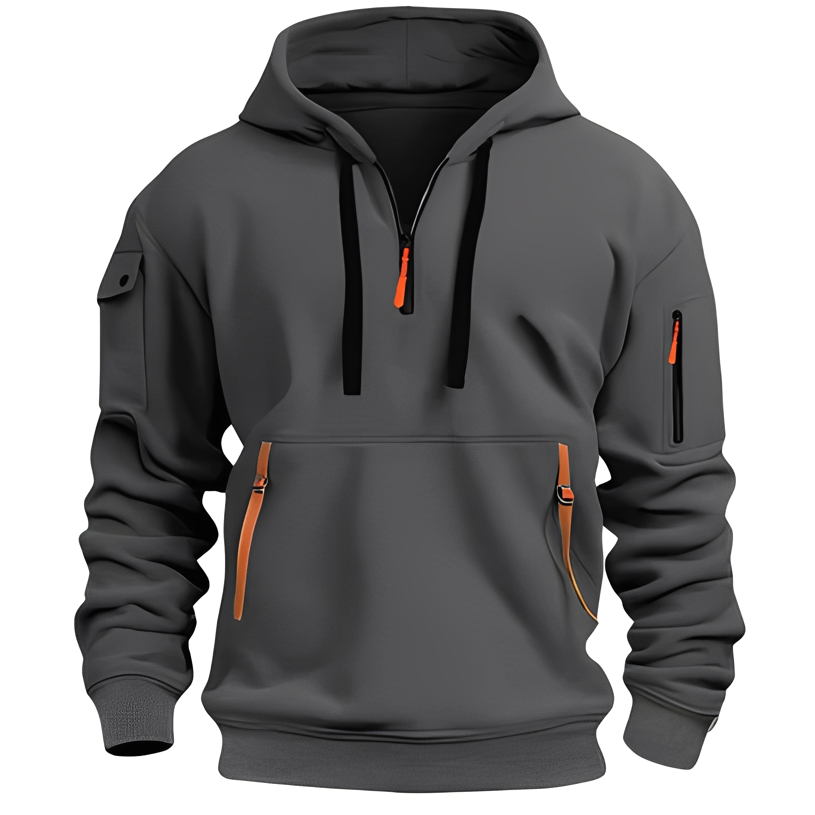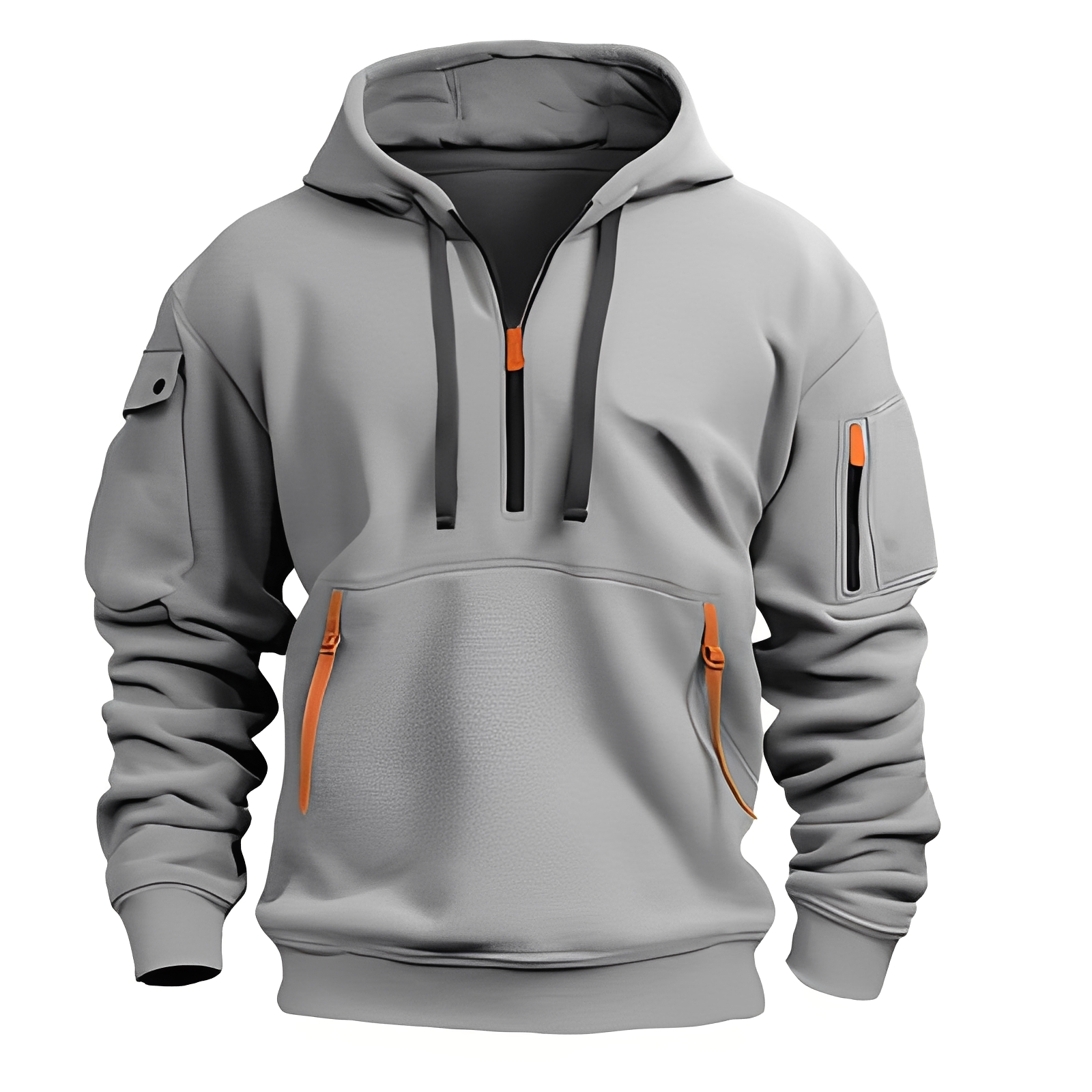 - Weite und funktionale Passform: er ist mit einer großzügigen Kapuze und einer lässigen Silhouette ausgestattet, um Bewegungsfreiheit zu ermöglichen und einen entspannten Look zu bieten.