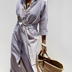 Verleihen Sie Ihrem täglichen Stil mit diesem klassischen und vielseitigen gestreiften Hemdkleid das gewisse Etwas.