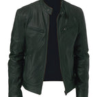 Die lässige Lederjacke für Damen Florent vereint zeitlosen Stil mit Alltagstauglichkeit. Gefertigt aus hochwertigem, weichem Leder, bietet sie ein luxuriöses Gefühl und bleibt dennoch leicht für den ganztägigen Tragekomfort. Ihr klassischer Schnitt und das minimalistische Design ermöglichen es, sie einfach über Oberteile, Kleider oder legere Outfits zu tragen. Ihre strapazierfähigen Nähte und hochwertigen Materialien machen sie alltagstauglich, während sie ihr gepflegtes Aussehen behält. Vielseitig und elegant, ist die Florent Jacke perfekt für legere Ausflüge sowie für schicke und lässige Anlässe.
