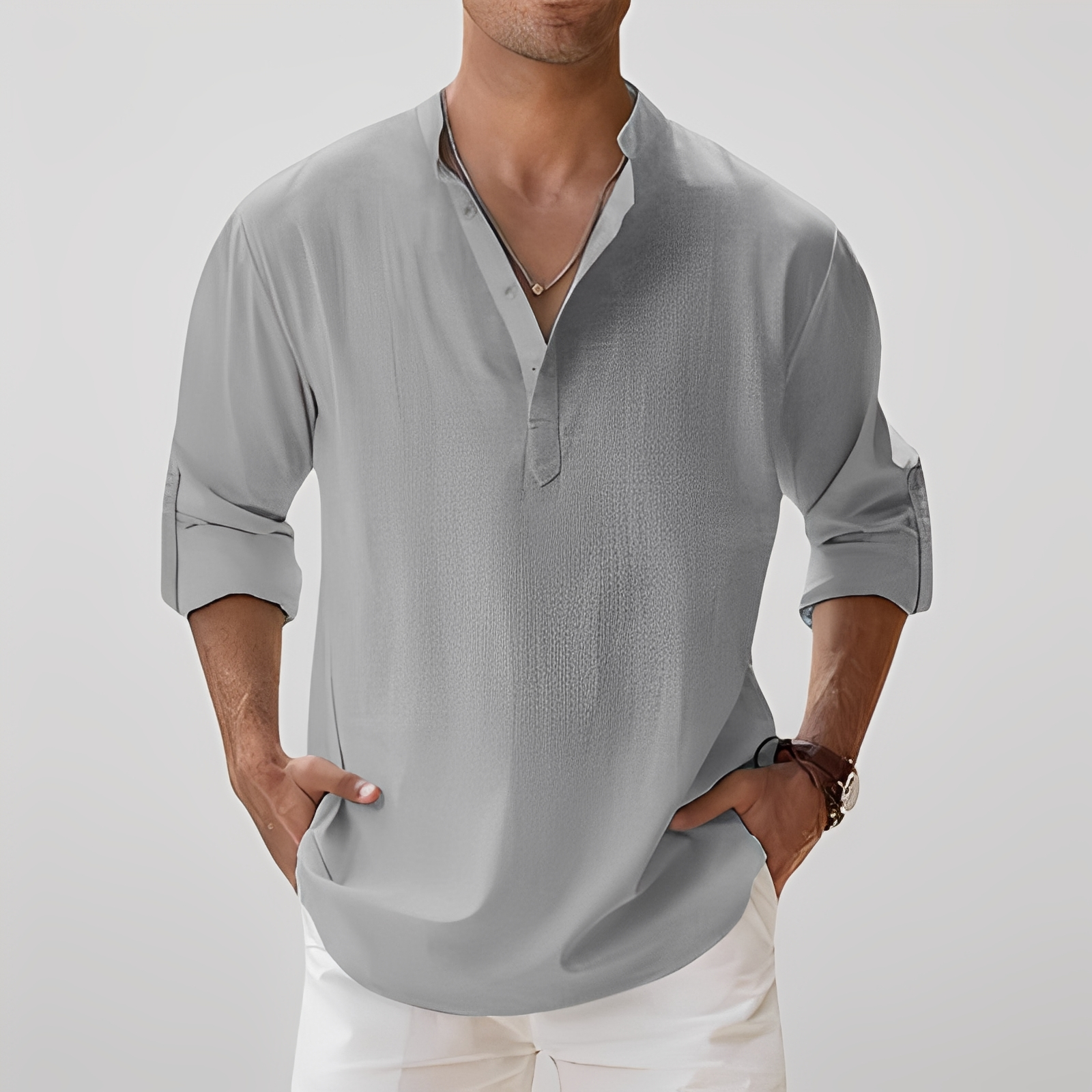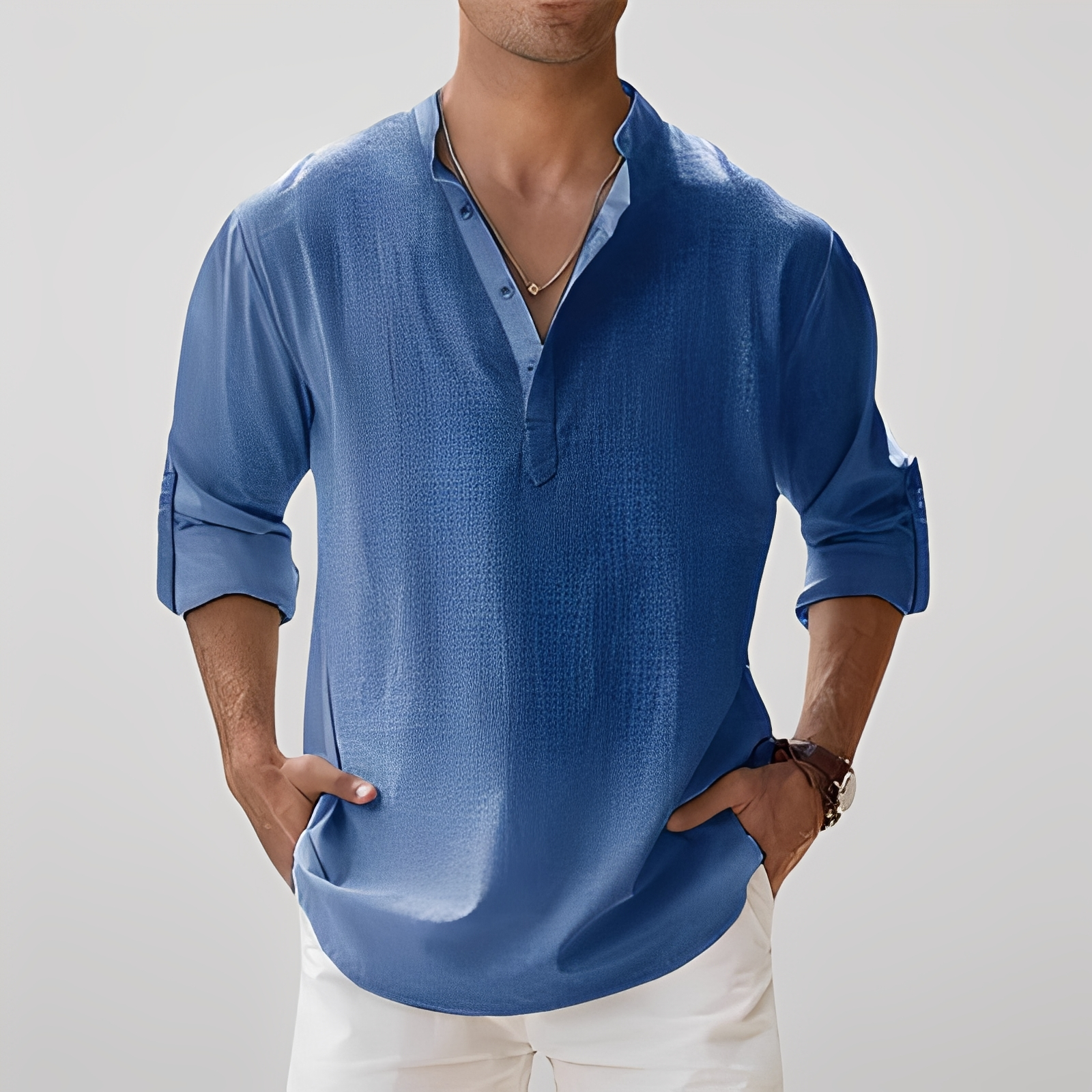 Das Freddy Langarmhemd für Herren ist so konzipiert, dass es ultimativen Komfort und zeitlosen Stil bietet. Hergestellt aus einem leichten und atmungsaktiven Stoff, hält es Sie auch an den heißesten Tagen kühl und bietet gleichzeitig einen gepflegten und lässigen Look. Sein klassischer Schnitt und die langen Ärmel machen es perfekt, um es allein oder in Lagen bei schicken und lässigen Anlässen zu tragen. Vielseitig und einfach zu kombinieren, passt es mühelos zu Chinohosen, klassischen Hosen oder Jeans. Bequem, atmungsaktiv und elegant, ist das Freddy Hemd ein Muss in der modernen Herrengarderobe.