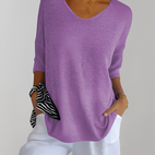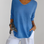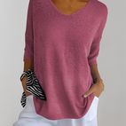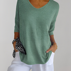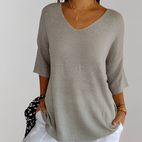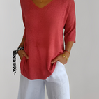 Verleihen Sie Ihrem Alltagsstil mit dem Jessé Strickoberteil mit V-Ausschnitt, das bequem, schick und vielseitig einsetzbar ist.