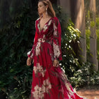 Karine - Elegantes langes Kleid mit V-Ausschnitt für Frauen