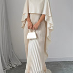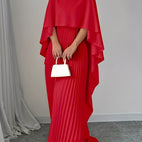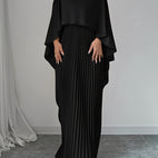 Das lange Kleid Katherine hat einen hohen Kragen, weite Ärmel im Fledermaus-Stil und einen fließenden, gefalteten Rock. Der lose Schnitt bietet hohen Tragekomfort, während das stilvolle Design elegant jede Bewegung betont. Ideal für Feiern, Abendessen oder besondere Anlässe, bei denen ein eleganter Auftritt gefragt ist.