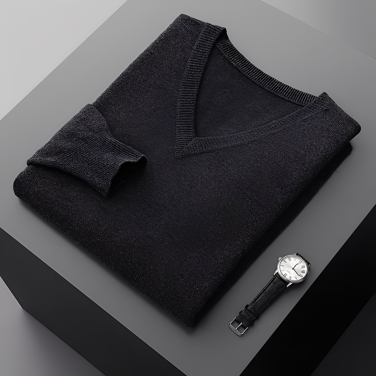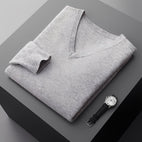 Der Kaschmirpullover „Myron“ überzeugt mit seiner schlichten Eleganz und dem unvergleichlich weichen Tragegefühl. Er besteht aus feinstem Kaschmir, bietet angenehme Wärme und fühlt sich nicht schwer an. Der V-Ausschnitt verleiht ihm einen modernen und vielseitigen Look – perfekt für Büro, Freizeit oder spezielle Anlässe.