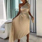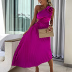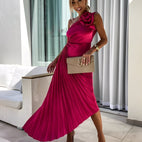 Rachael - Elegantes Damenkleid mit Falten und Blumen an der Schulter