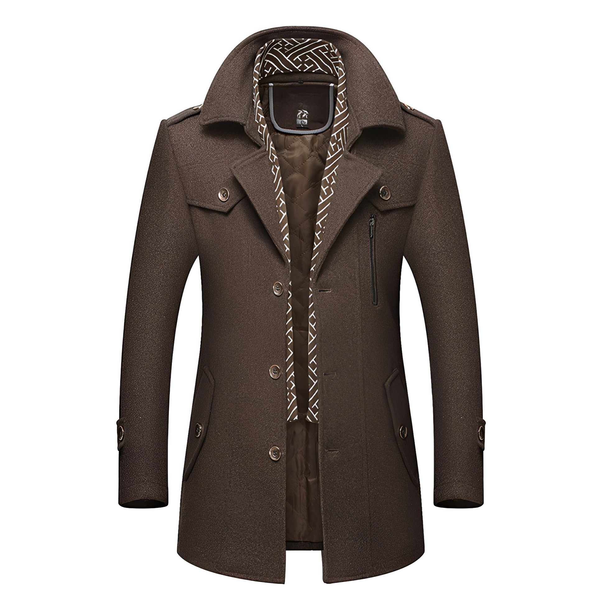 Dieser Retro-Mantel besticht durch sein widerstandsfähiges Material und geschickt platzierte Taschen, die sowohl funktional als auch modisch sind. Der klassische Schnitt bietet zeitlose Eleganz, während das warme Futter an kalten Tagen für Wohlbefinden sorgt. Perfekt für Männer, die Stil und Zweckmäßigkeit schätzen. Ein vielseitiges Kleidungsstück für den Alltag und besondere Anlässe.