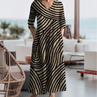 Entdecken Sie das Simonne Vintage Streifenkleid, entworfen, um Ihrer Garderobe einen klassischen Touch und einen lässigen Stil zu verleihen. Mit seinem schmeichelhaften V-Ausschnitt und dem schicken Streifenmuster vereint dieses Kleid Komfort und Raffinesse. Sein knöchellanger Schnitt und die funktionalen Taschen machen es perfekt für lässige Ausflüge, entspannte Tage oder sogar semi-formelle Anlässe. Hergestellt aus einem weichen und atmungsaktiven Material, garantiert es den ganzen Tag über Komfort, egal zu welcher Jahreszeit. Fügen Sie jedem Outfit mühelos einen Hauch von Vintage hinzu.