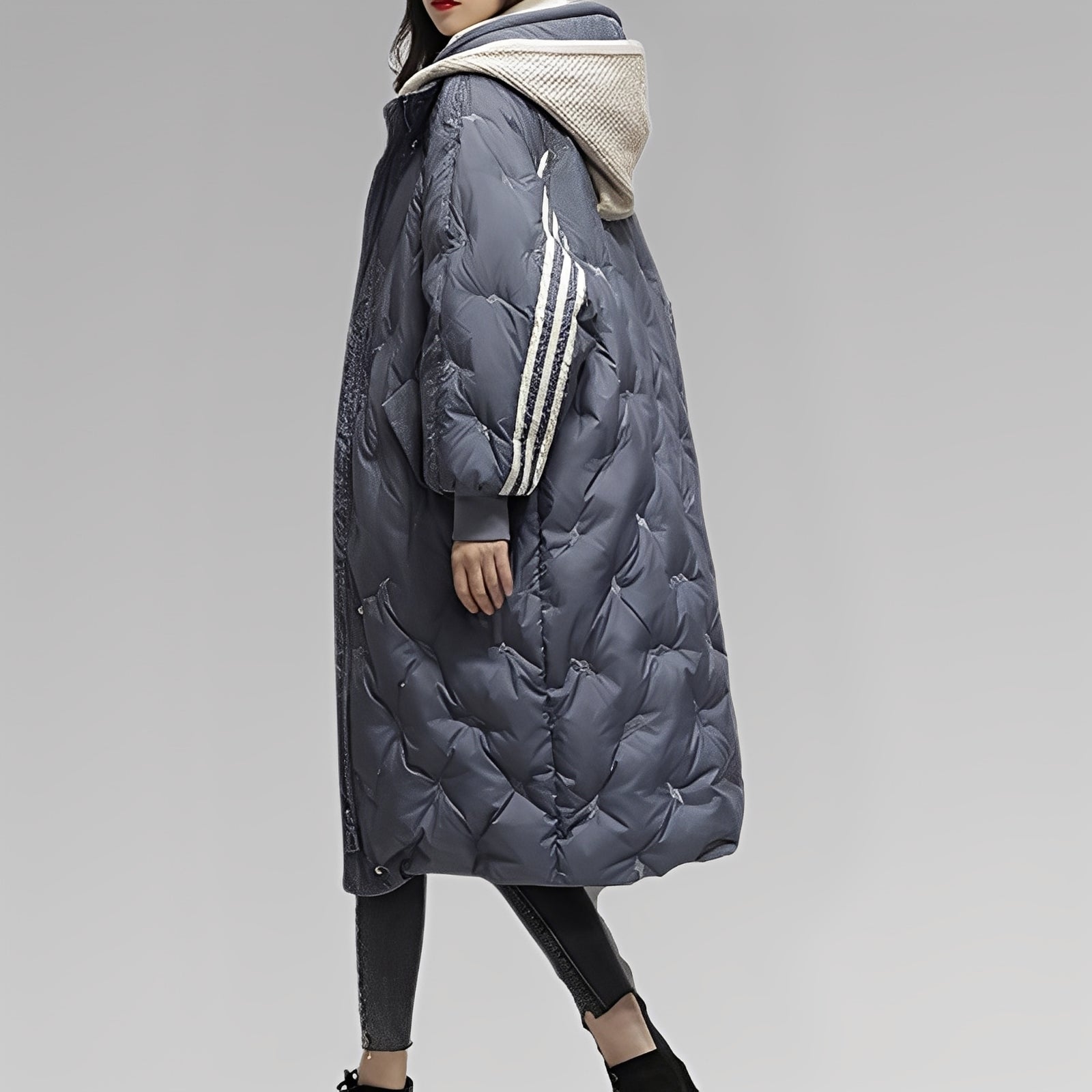 Langer Damen-Daunenmantel mit Kapuze und modernem Look